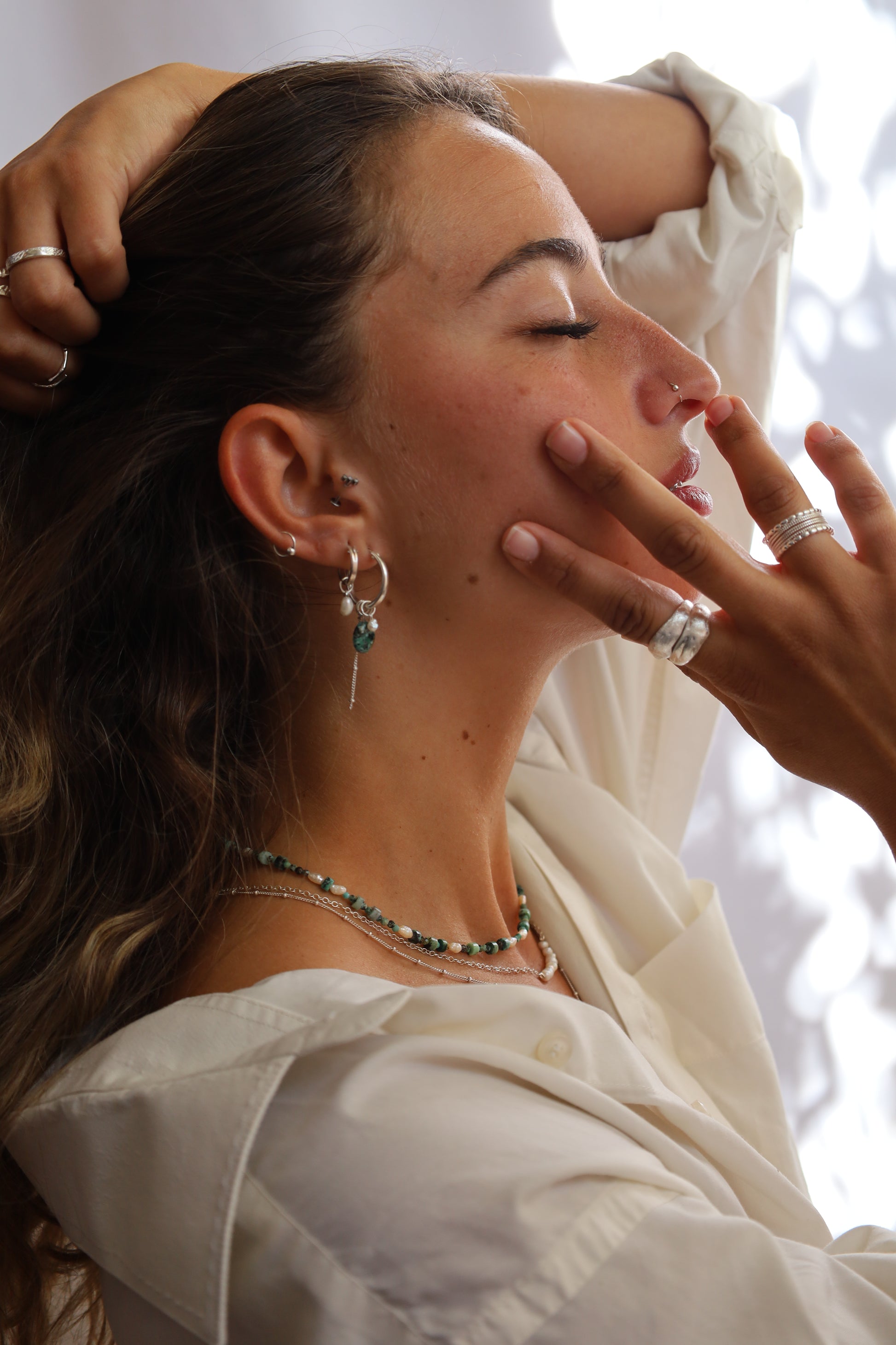 עגילי חישוק עם אבן טורקיז אפריקית ופנינה