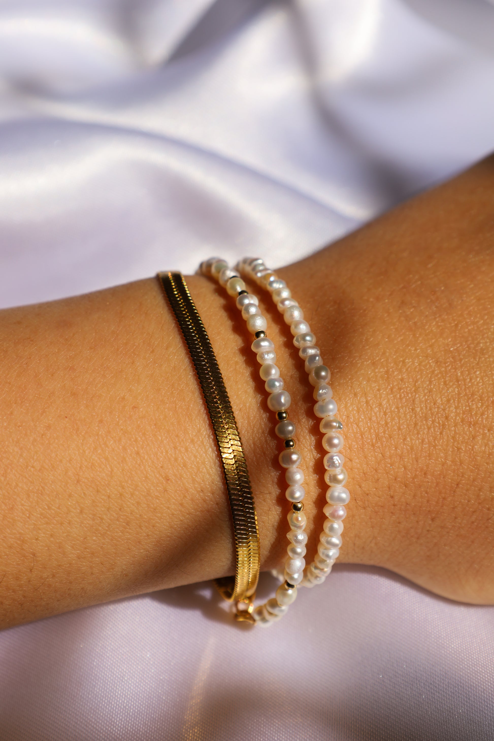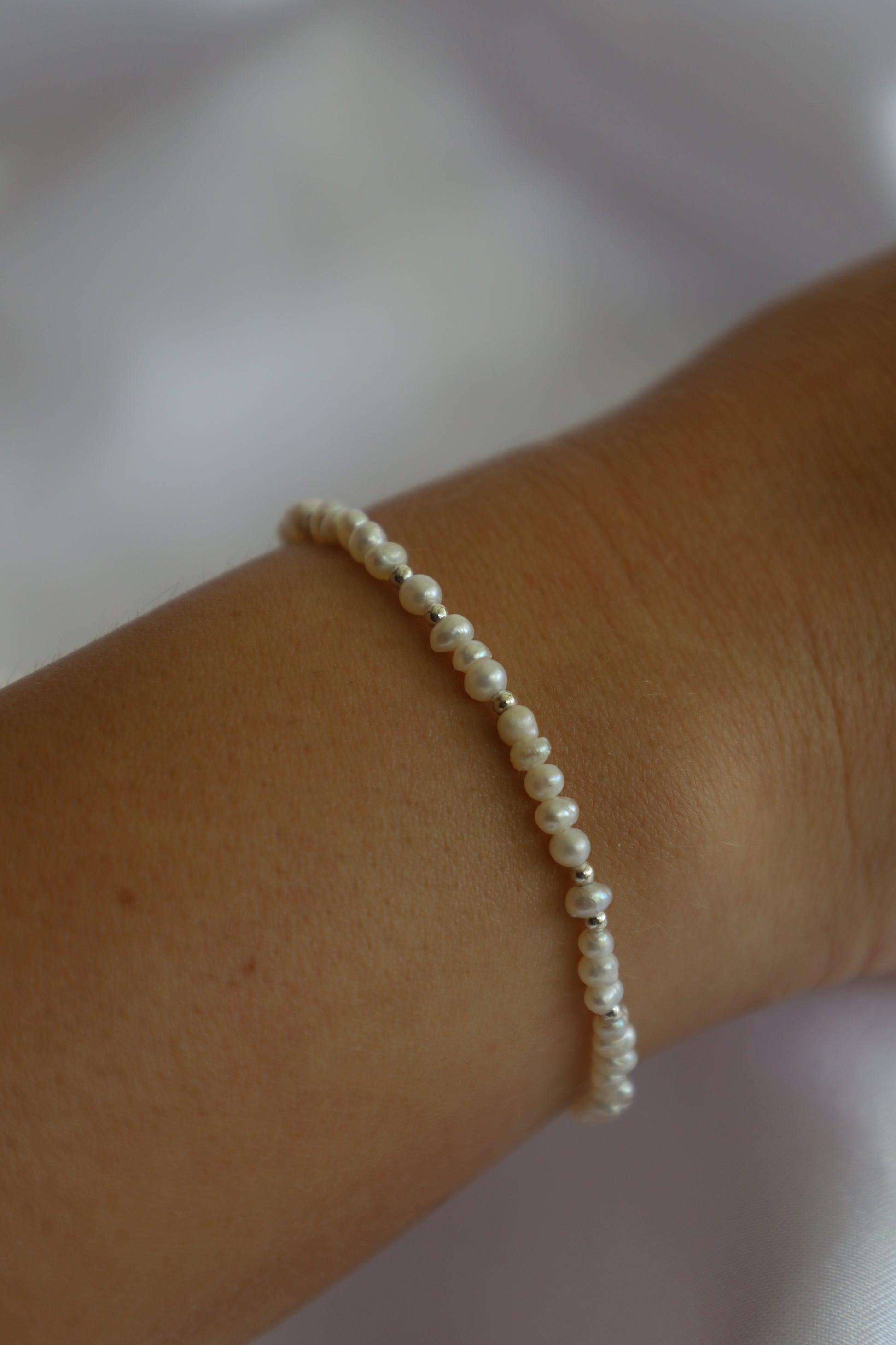 צמיד פנינים, עם נגיעות כסף או זהב, קלאסי ועדין שמשתלב מושלם עם כל סט צמידים