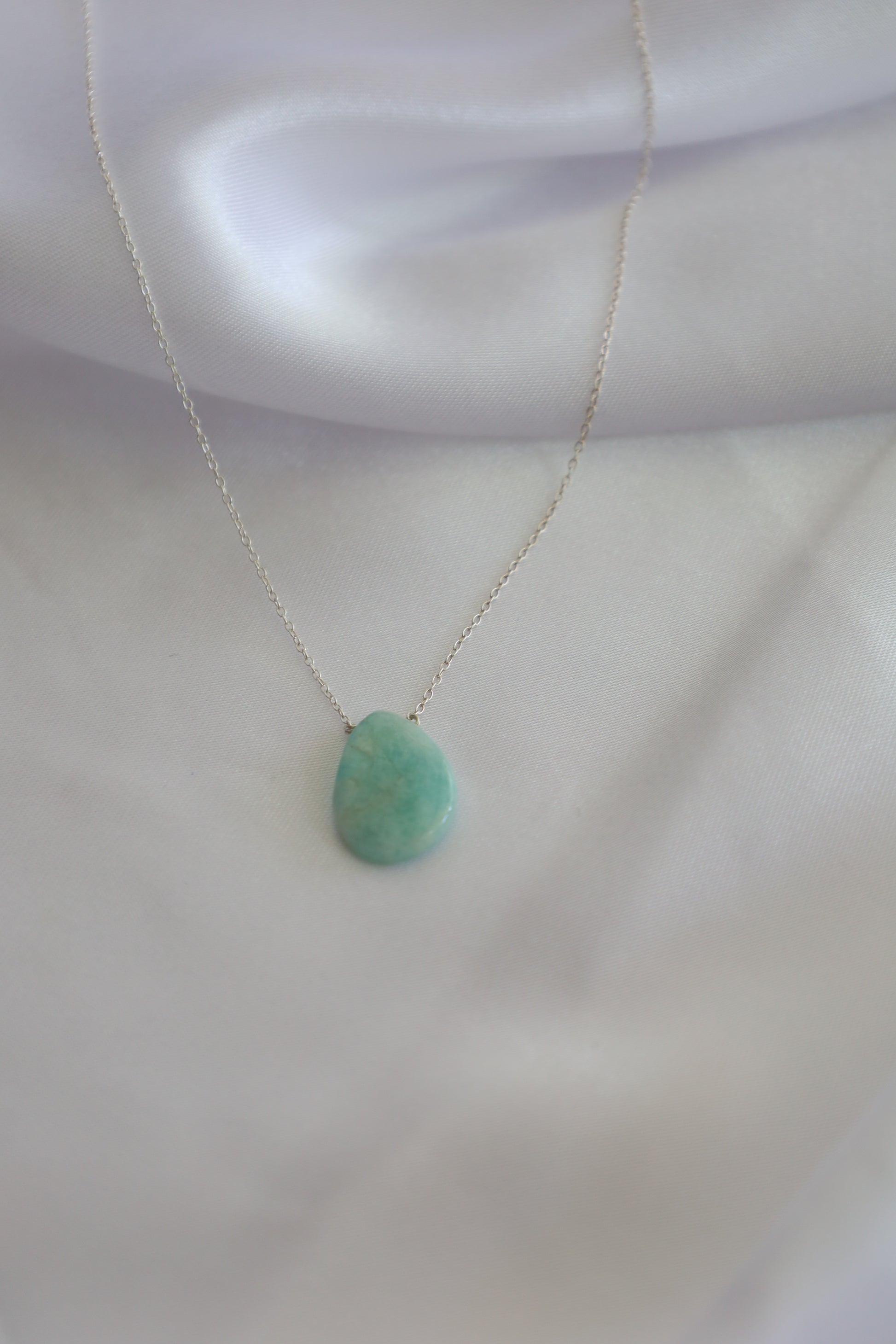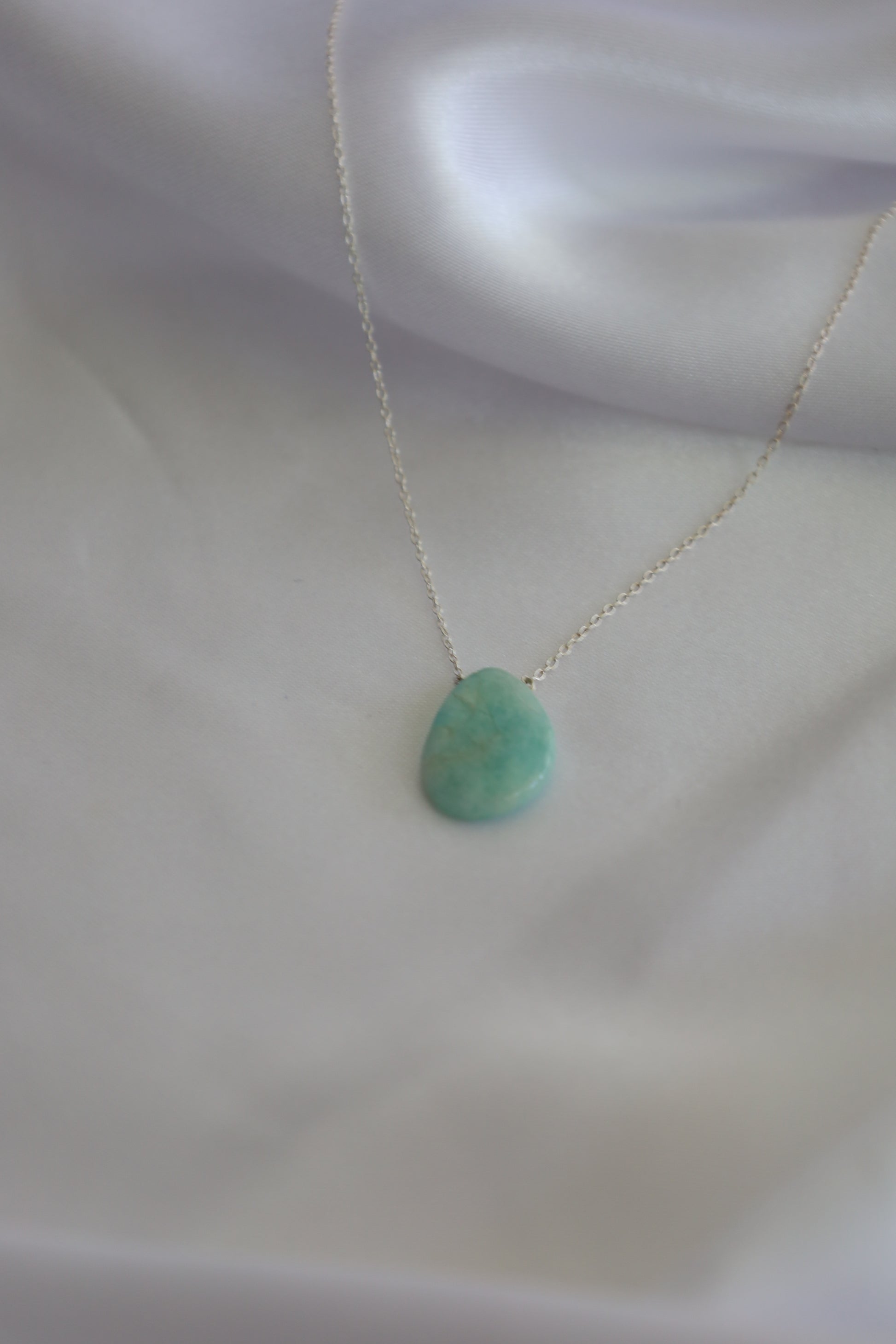 שרשרת עם אבן אמזונייט בצבע תכלת עוצמתי ומהמם
