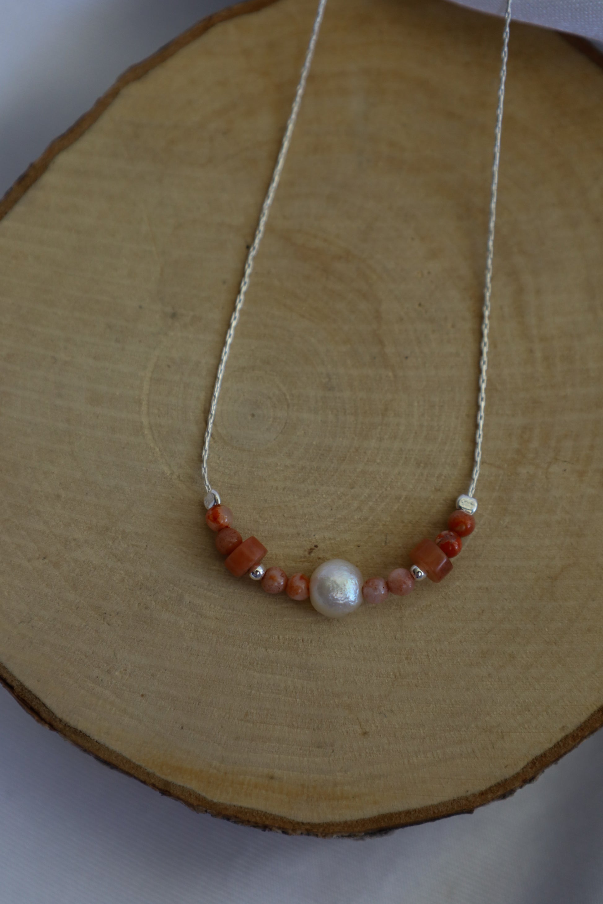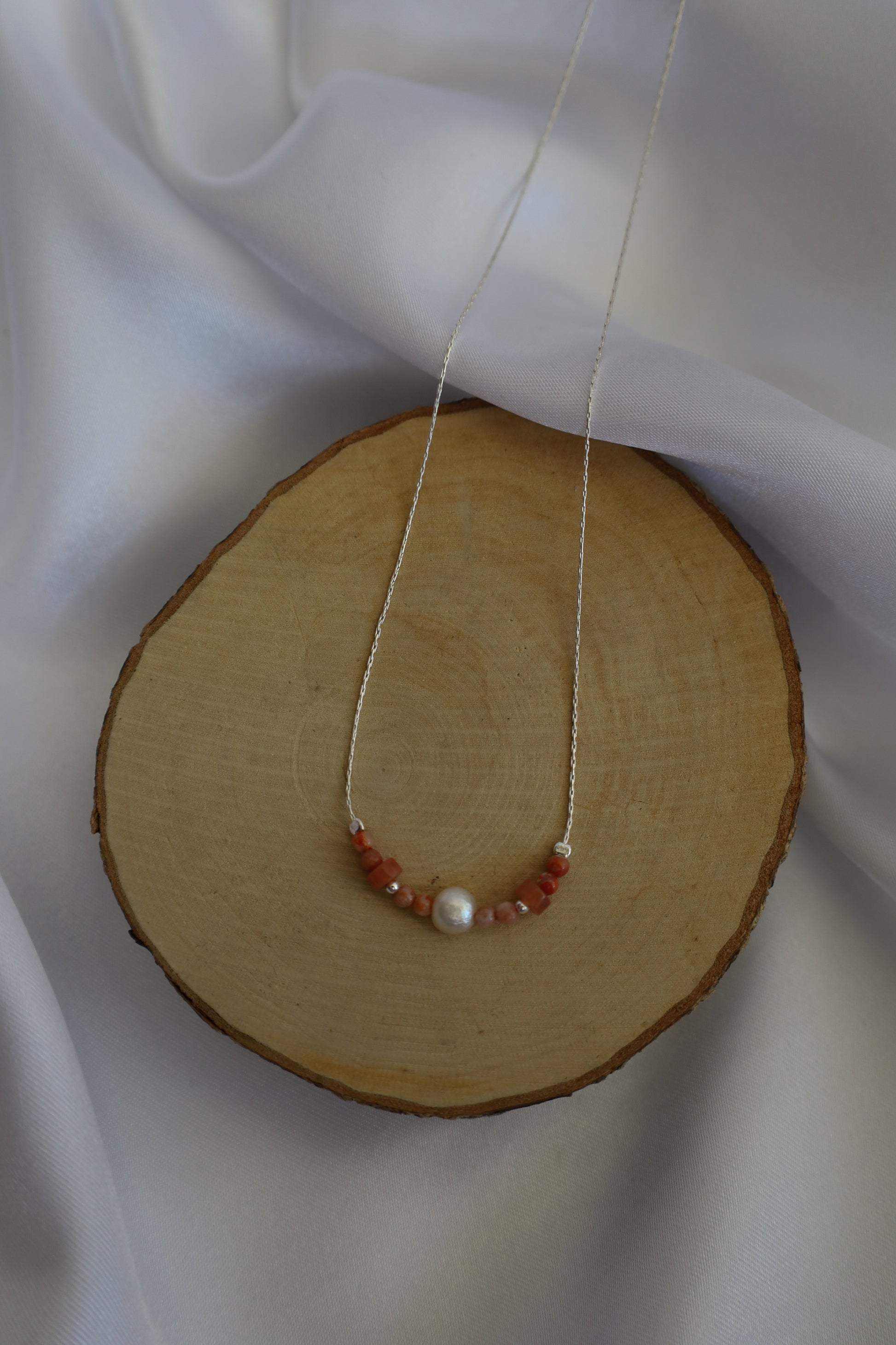 שרשרת ועדינה עם צבעים חמים ופנינה מושלמת