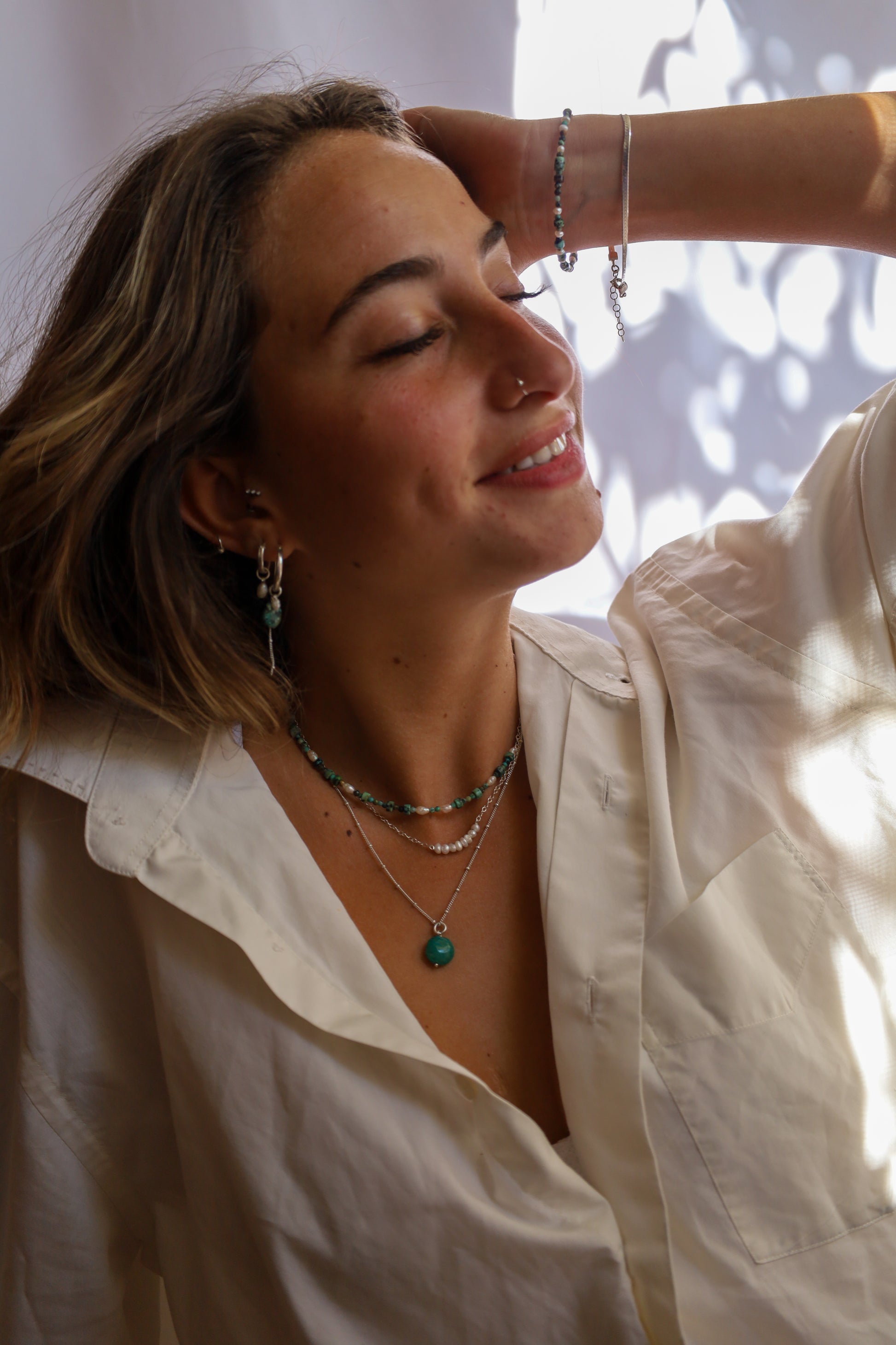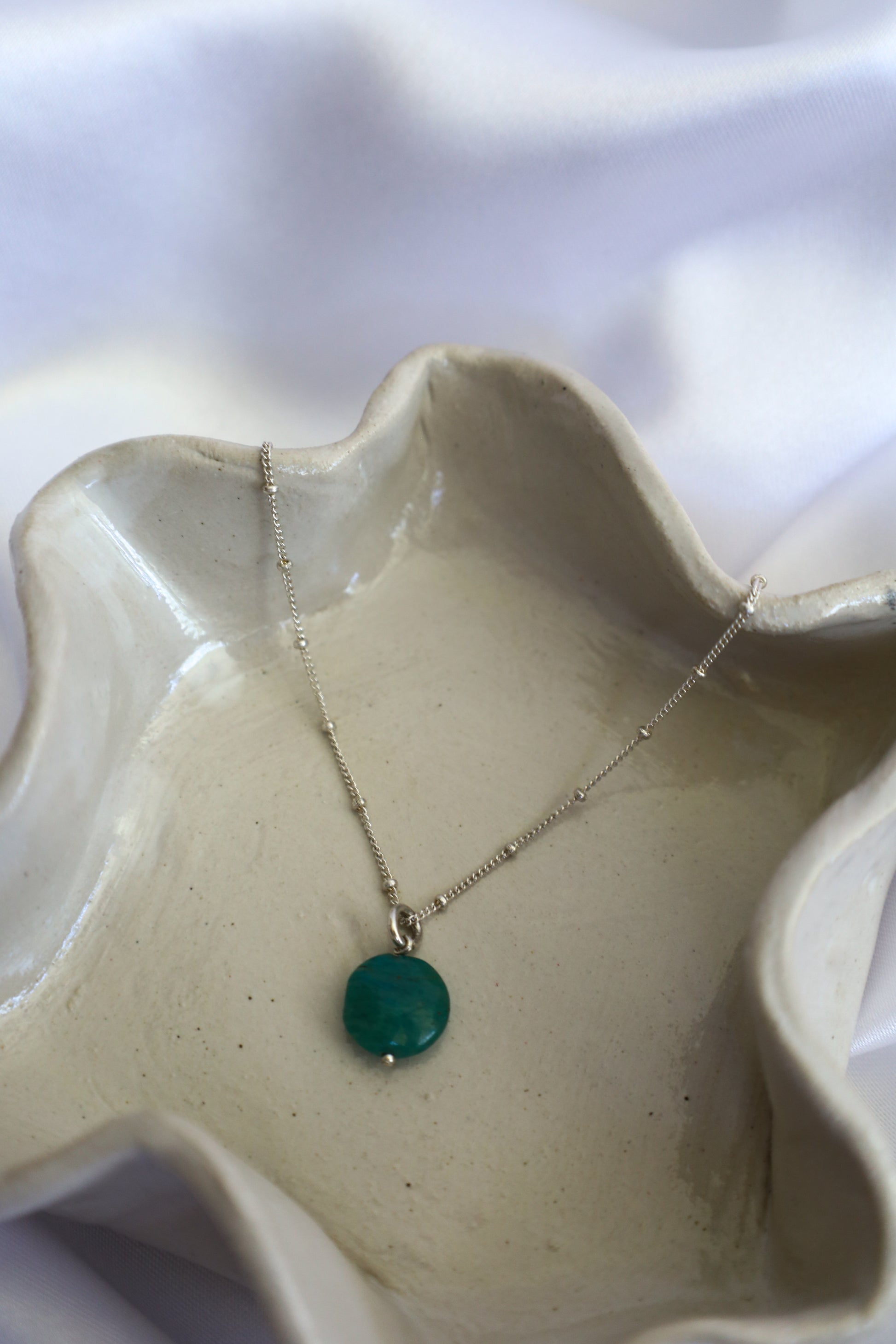 שרשרת קלאסית עם אבן אמזונייט רוסית בצבע ירוק מושלם